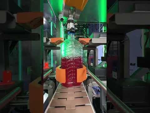 6-axis robot equipped with a 160 kg gripper for the current handling of 8 bottles onto a Euro pallet.